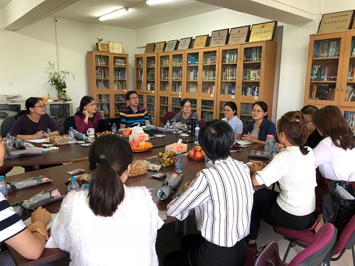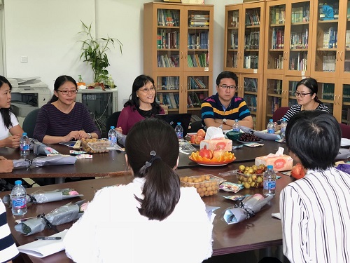 学院对本次座谈会十分重视,为各位老师预定了鲜花,购买了丰盛的水果和小食,座谈会在温馨轻松的氛围下拉开了序幕。会上首先由各个语种的新老师进行了自我介绍和简短的发言。他们分别是有着十五年教学经验的德语老师陈燕,年轻活力的葡语老师吉昊天、牛安琪,酷爱体育的西语老师鞠思佳、王珊,温柔大方的俄语老师张墨池、冯雪。各位老师首先对学院认真筹备并组织召开新教师座谈会表示了感谢,并纷纷表示能加入国际体育组织学院的教师队伍是每位新老师的荣幸,大家一定会认真思索复语复合型人才的培养模式,努力探索出一条符合北京体育大学特色的语种专业建设方向,并力争打造成特色专业,在业内获得一定的声誉和认可。