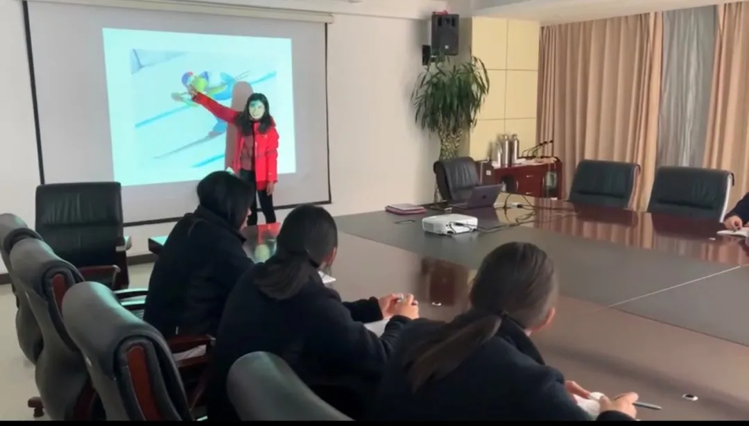 图为李娟老师给高山滑雪国家队运动员上英语课