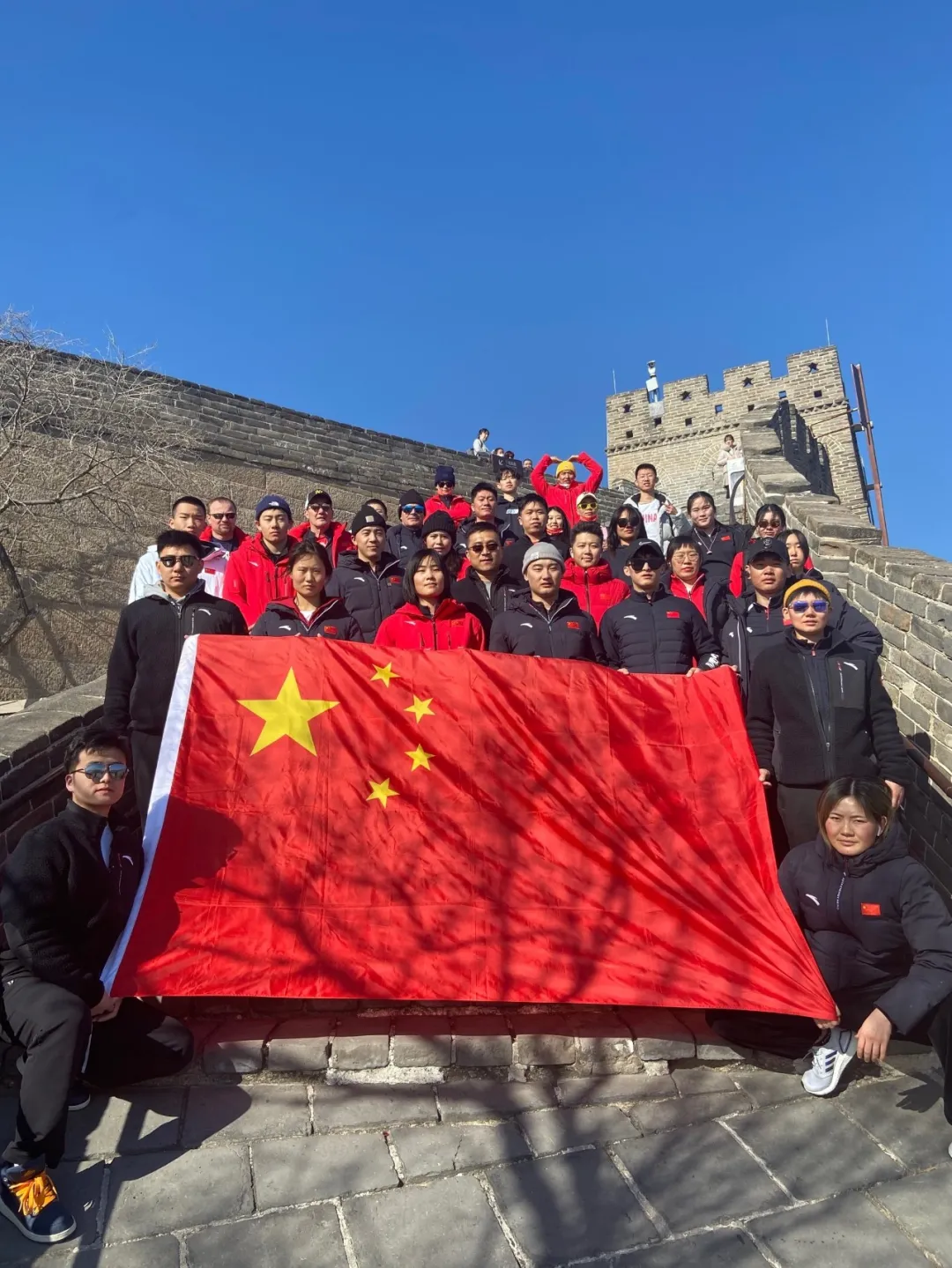 图为李娟老师与高山滑雪国家队全体人员一起过春节