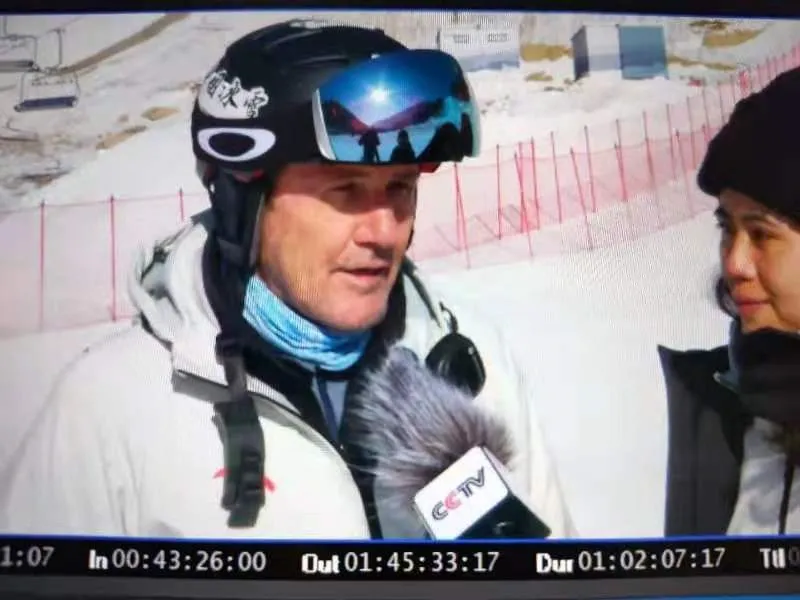图为央视采访高山滑雪国家队外教 李娟老师担任翻译