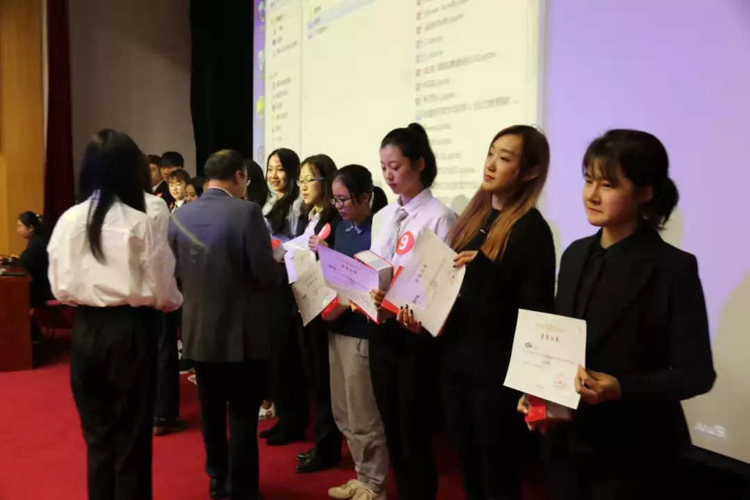 万众瞩目的颁奖仪式终于在紧张的气氛中揭开了它神秘的面纱。此次比赛,颁奖嘉宾为同学们颁奖,来自国际体育组织学院的张若涤、上官晶晶同学担任颁奖司仪。