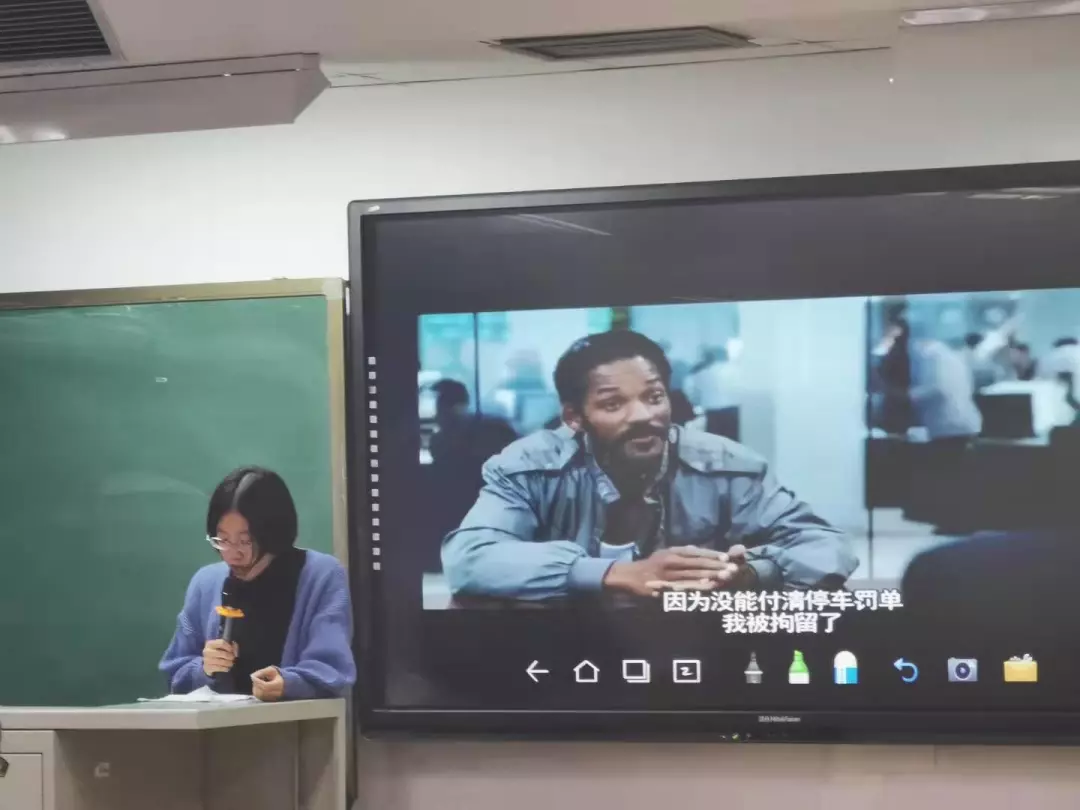本次配音比赛以"challenge"为主题,参赛选手分别要完成一分钟的主题演讲(针对配音内容)和两分钟的视频配音。许多参赛同学提前到场熟悉文稿,适应人物角色,为正式登台做最后的准备。