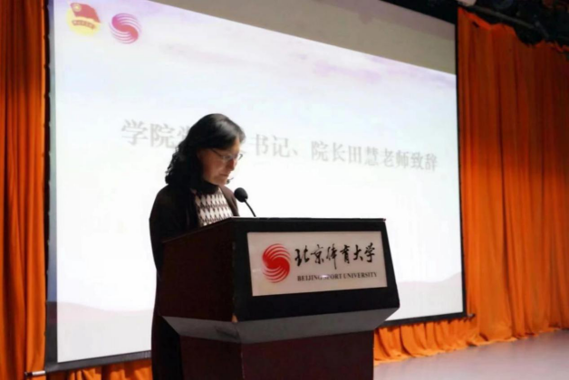 田慧院长表达了对获奖同学的祝贺,希望被表彰的集体和个人,能够继续努力,百尺竿头更进一步,希望在座的全体同学能够以身边同学为榜样,虚心的学习,争取明年有新的突破。同时,田老师也对学院的教学科研取得的成就进行总结,激励同学们要在国体遇见更优秀的自己。最后田慧老师希望同学们戮力同心,锐意进取,为国家建设贡献体育人、外语人的青春力量。