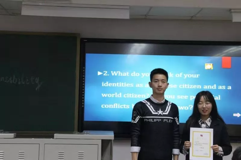 这些问题或与时事热点挂钩,或与日常生活挂钩,力争让每个人都有话可说,有感可发。如李雨琪同学在演讲中流露出了对弱势群体的关怀;陈兵姿同学对‘To combat climate change.’ 讲出了地球公民的责任,并从个人层面对‘If not me, who? If not now, when?’做出了阐释;再如张清同学在‘The price of greatness is responsibility.’中讲到了能力与责任的关系。