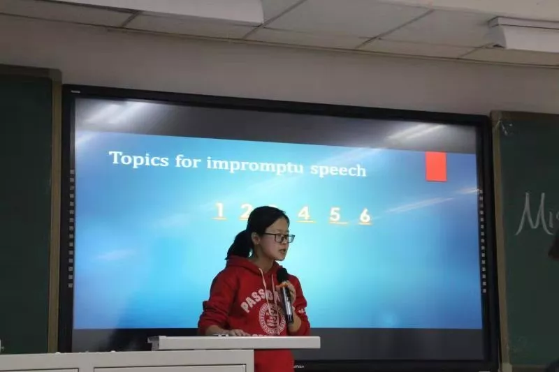 第二部分是即兴演讲和现场问答,选手们从题库中随机抽取一个问题,并明确自己的观点,进行即兴演讲。即兴演讲的时长为一分钟。在每位选手演讲之后,评委老师根据选手的陈述进行提问。