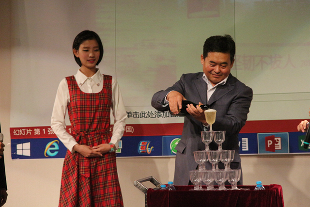 在一曲合唱的生日快乐歌下,田慧教授切开大蛋糕,赵京慧书记倒了一个香槟塔。毕业生和所有老师们进行了合影留念,外语系过了它的十岁生日。在场的每一个人都为之感动和欣喜。