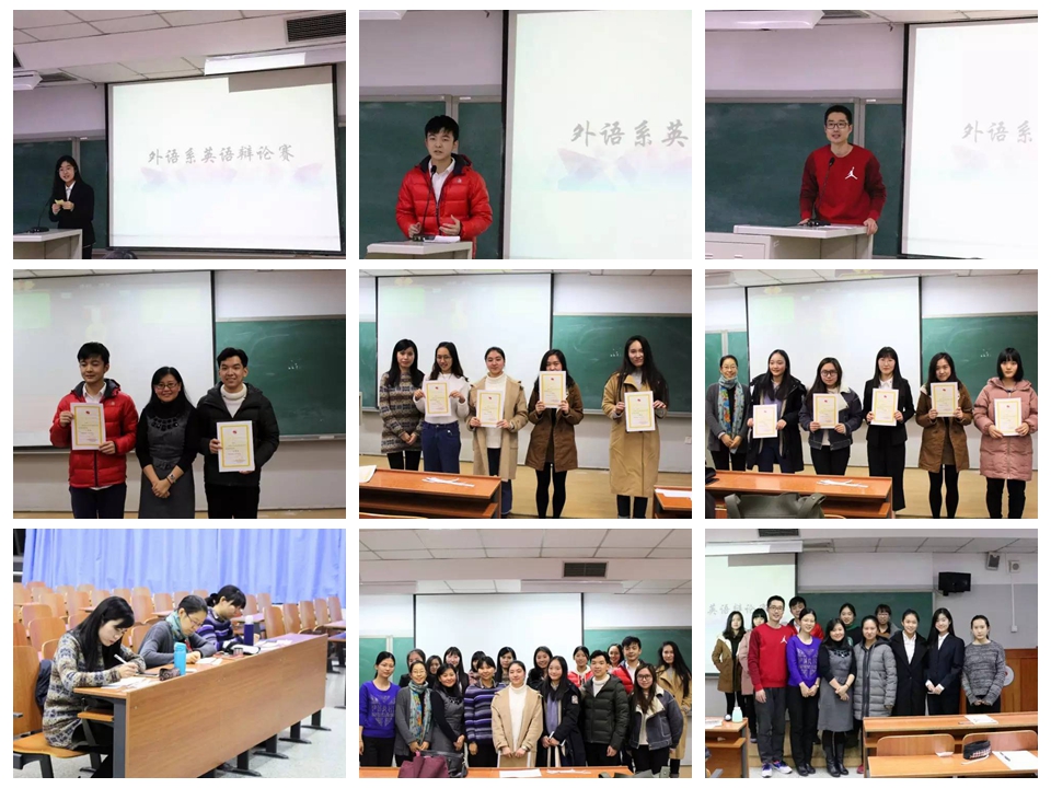 随后,评委老师们经过仔细讨论与协商,确定了获奖名单。12月21日将由选出的优秀选手代表外语系出征决赛。最后,王严老师为获奖选手颁发获奖证书并集体合影留念。至此,选拔赛圆满结束。