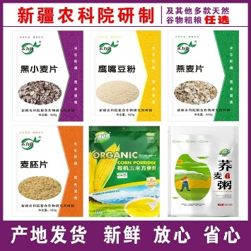 由新疆农科院研制的黑小麦片、鹰嘴豆粉、燕麦片、麦胚片等天然谷物粗粮健康而美味。