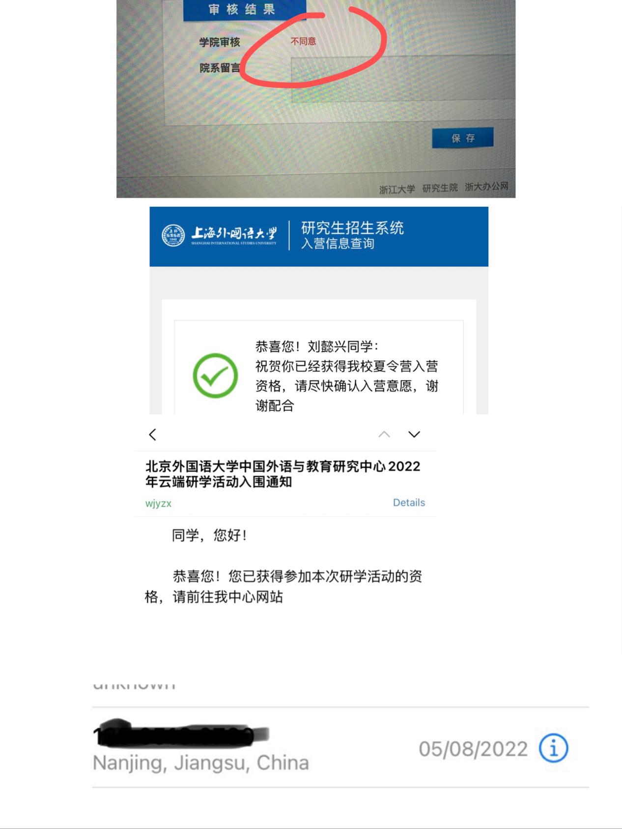 六月,浙大夏令营网站上红色的“不同意”击碎了我美好的幻想,跨专业也绝非易事。我决定不再只投递梦校,开始有了一些规划,于是我开始陆续收到入营通知,我的推免之路开始慢慢走向正轨。