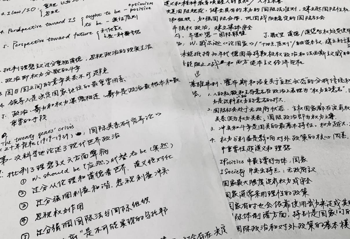 我是跨专业保研,但有学姐曾和我说过,对方院校并不会因为你是法语专业的学生就放低对你的要求,你要以国际关系专业学子的素养要求自己。比如我将要去的武大国问院,在面试阶段的考察分为国际关系专业知识和英文水平两个方面,没有涉及法语。所以在保证本专业学习之余,我也需要自学国际关系的知识。在准备阶段咨询了一些在国际关系专业学习的学姐,她们给我推荐了一些入门的书籍和日常积累的公众号等等,可以利用起来,在日常积累一些对实事的看法和分析。并且,直到学院公布推免名单的那一天,我都还在准备国关考研,四本专业书籍都已经跟着课程过了一遍开始背第二遍了,我想这无形之间也增加了我的国关素养。