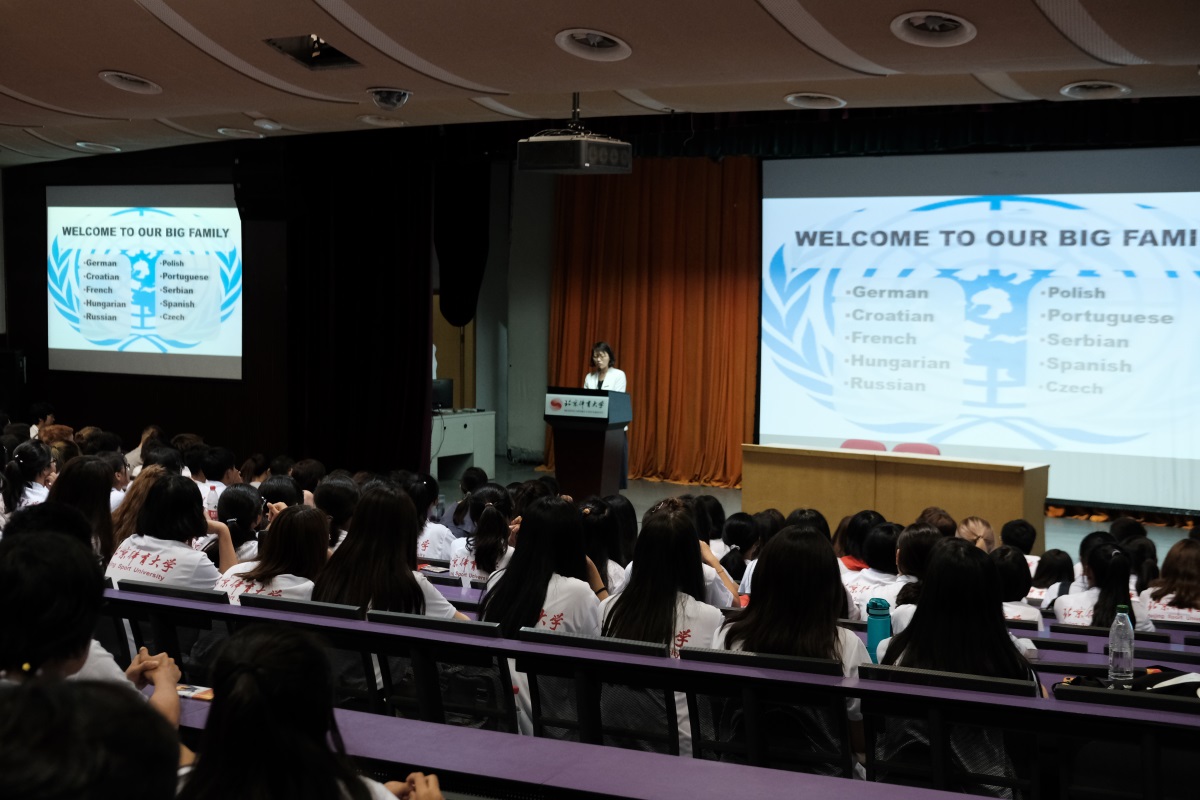 9月8日上午,国际体育组织学院欧洲语言系2019级新生见面会在教学楼卓越报告厅举行。国际体育组织学院的十个语种专业张开双臂迎来了175名来自大江南北的2019级本科新生。出席见面会的有国际体育组织学院党总支书记、院长田慧教授,副院长郑辉副教授,欧语系系主任陈燕副教授,英语系教师代表胡旭老师,以及欧语系全体在职中外教师。见面会由欧语系教师王珊主持。