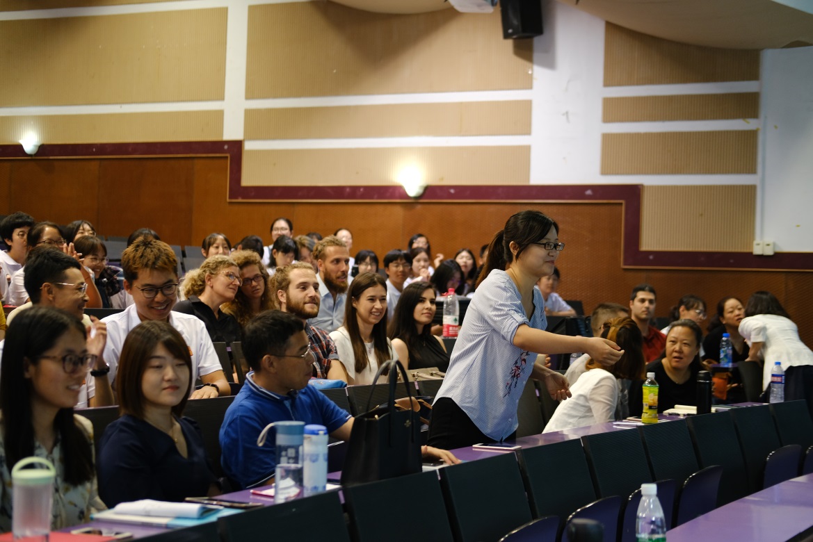 见面会的第三个环节是在校生与新生分享经验。来自2018级的三位同学向新生分享了过去一年的心路历程。经验的传达将有助于新同学顺利实现身份转换,早日适应大学学习与生活节奏。