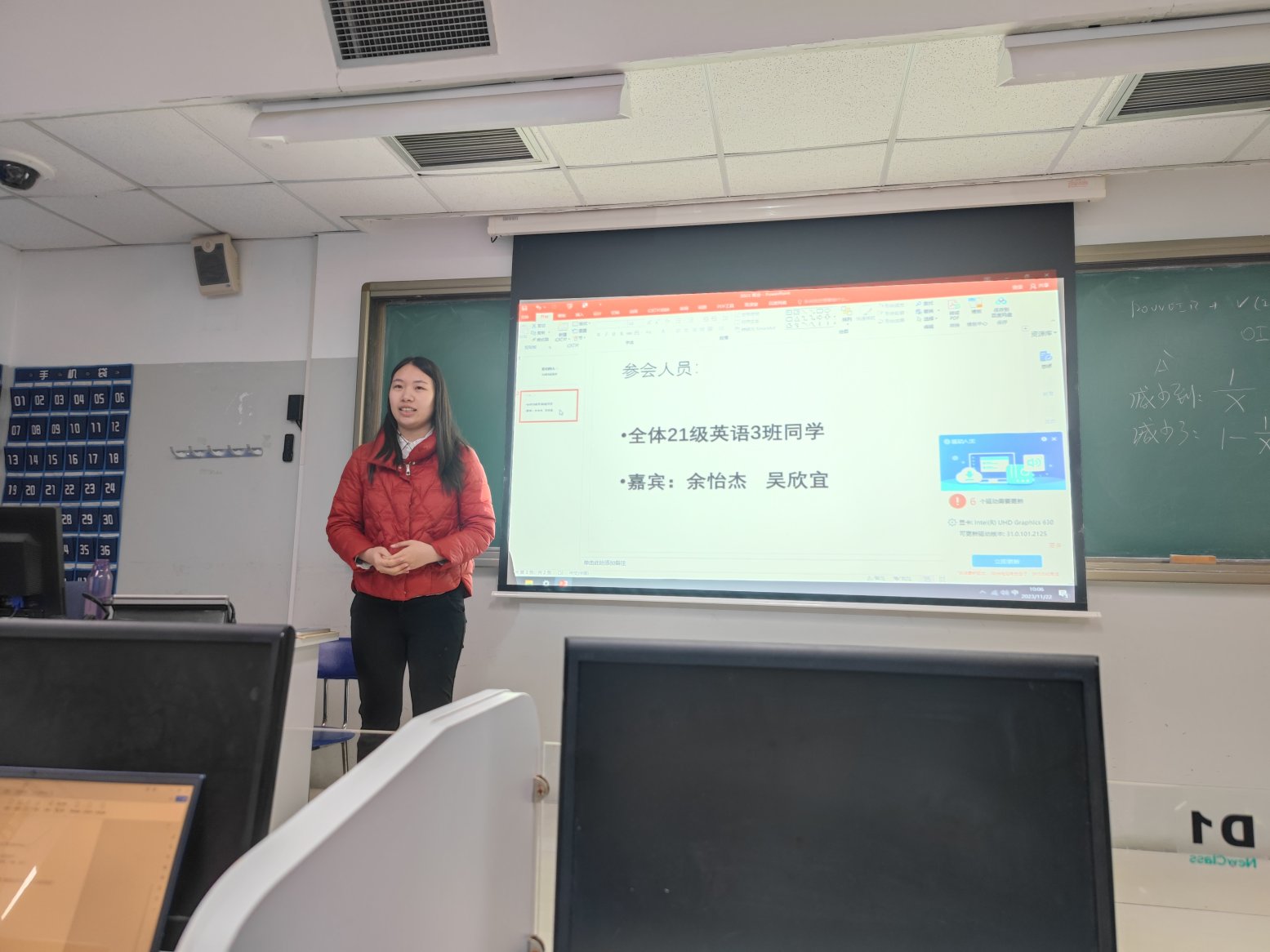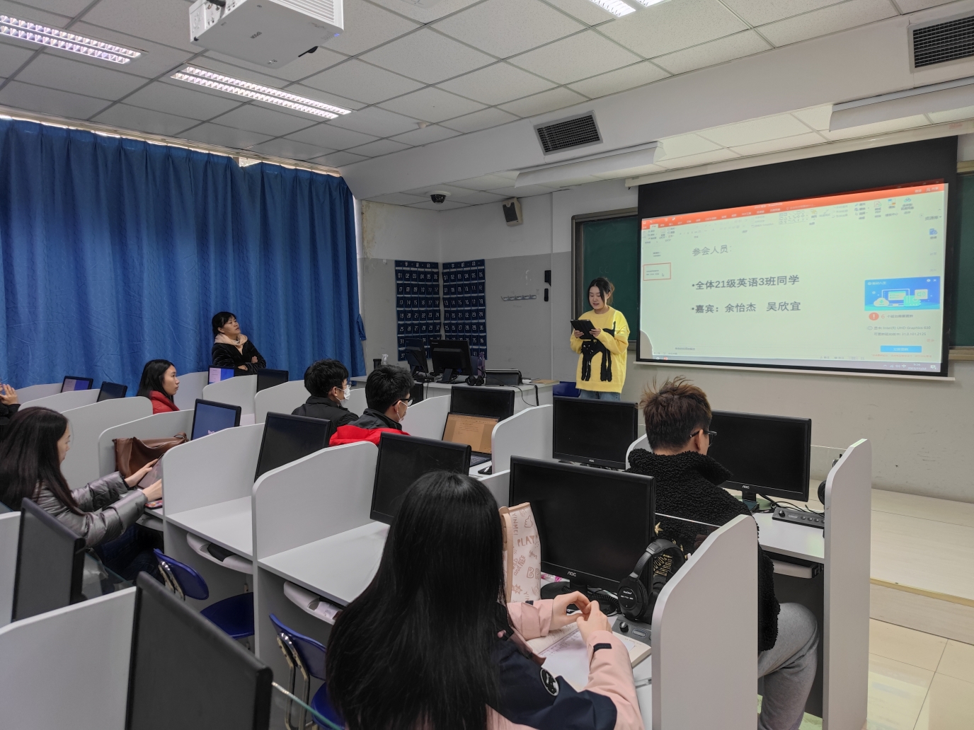 1122日上午,在教学楼109教室,2021级英语3班召开主题为“我们的大三”班会。大三是本科学习中重要的一年,既是从专业基础知识学习到综合素质培养的过渡的一年,也是涉及校外实习和未来职业安排的一年。班主任陈杰老师召集21级英语三班同学,聆听大家的感受,并请到余怡杰、吴欣宜两位学姐为大家分享本科学习的心路历程和学习安排。