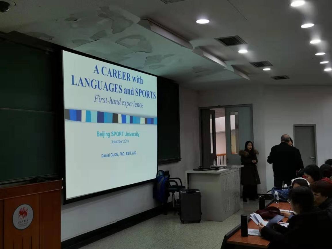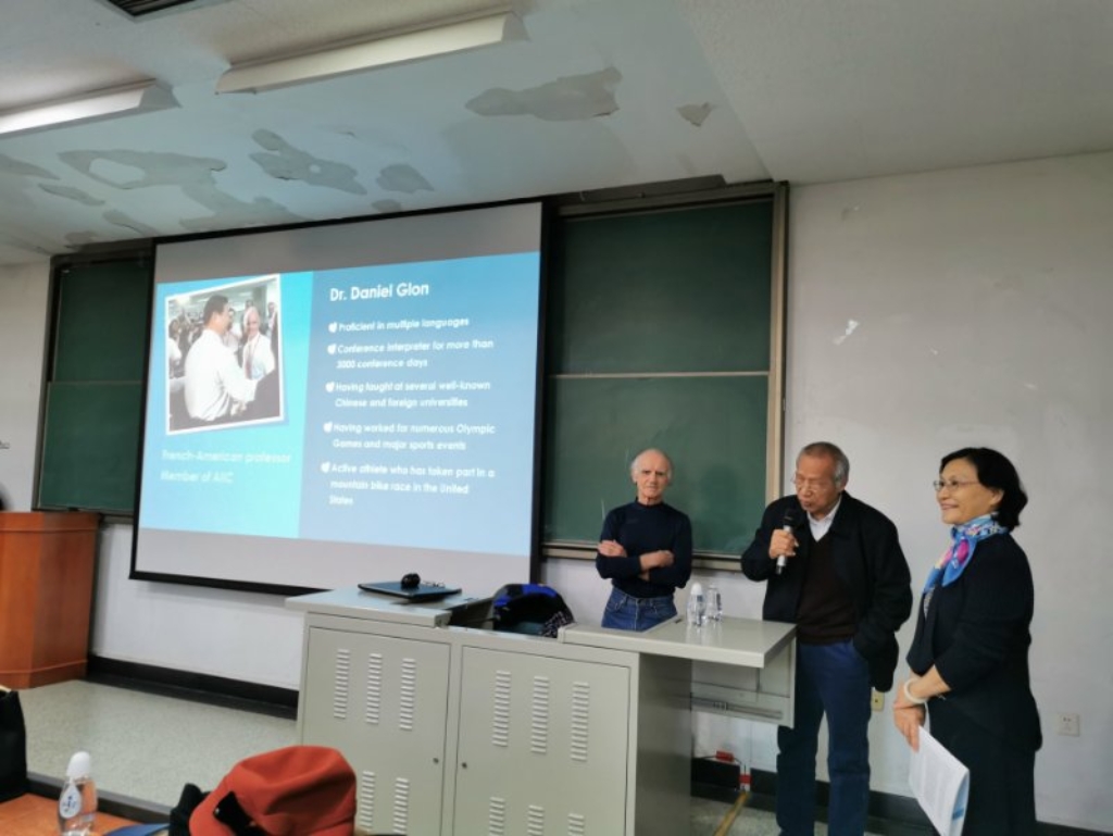 20191213日上午10:00-11:30,国际体育组织学院邀请美籍法裔 Daniel Glon教授为广大师生带来了一场别开生面的专题讲座:语言与体育完美结合的职业