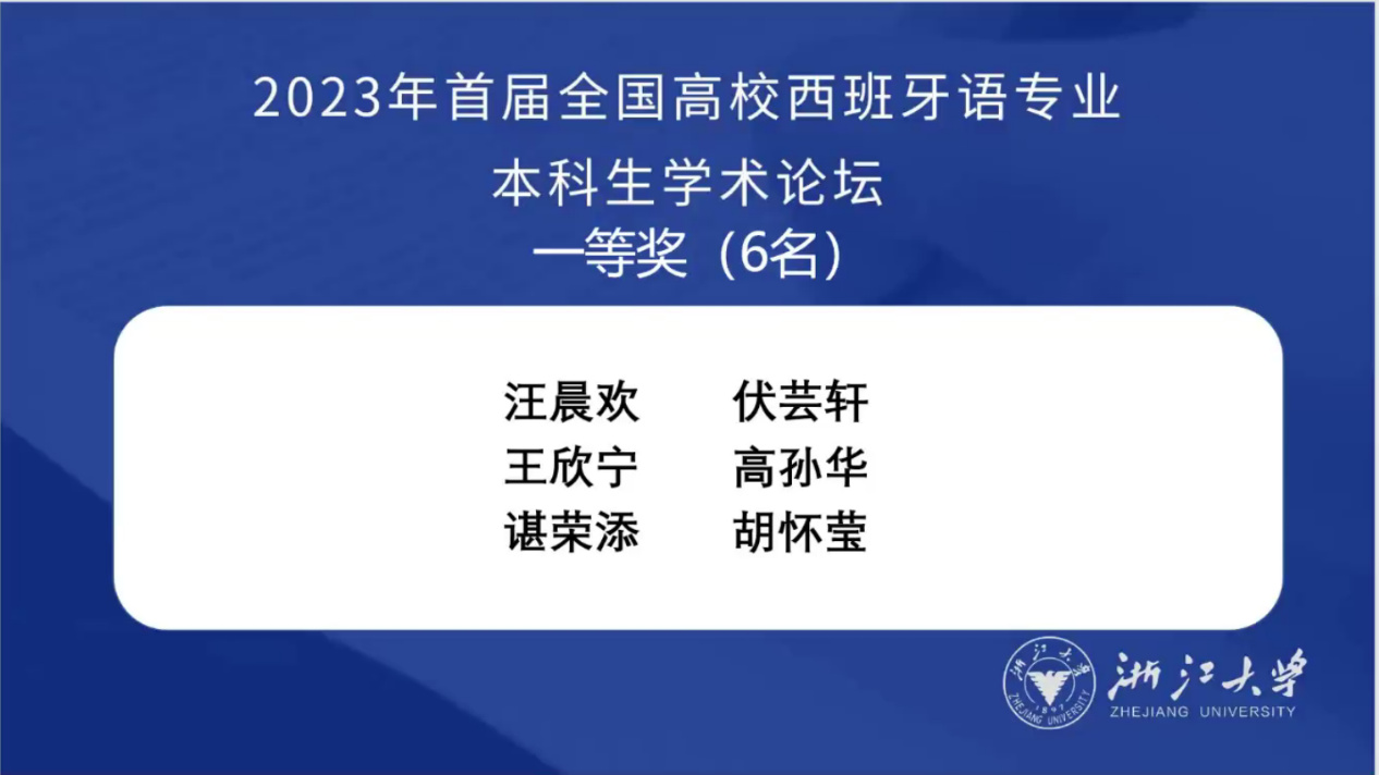 2023年6月4日,在由浙江大学外国语学院西班牙语语言文化研究所举办的首届“全国高校西班牙语专业本科生学术论坛”中,国际体育组织学院欧语系西班牙语专业2020级学生谌荣添、毛静旖同学分别斩获一等奖和二等奖。