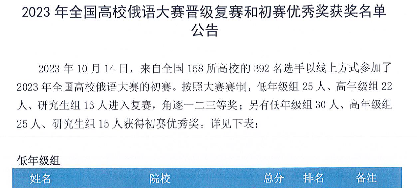喜报:我院学生在2023年全国高校俄语大赛中荣获佳绩