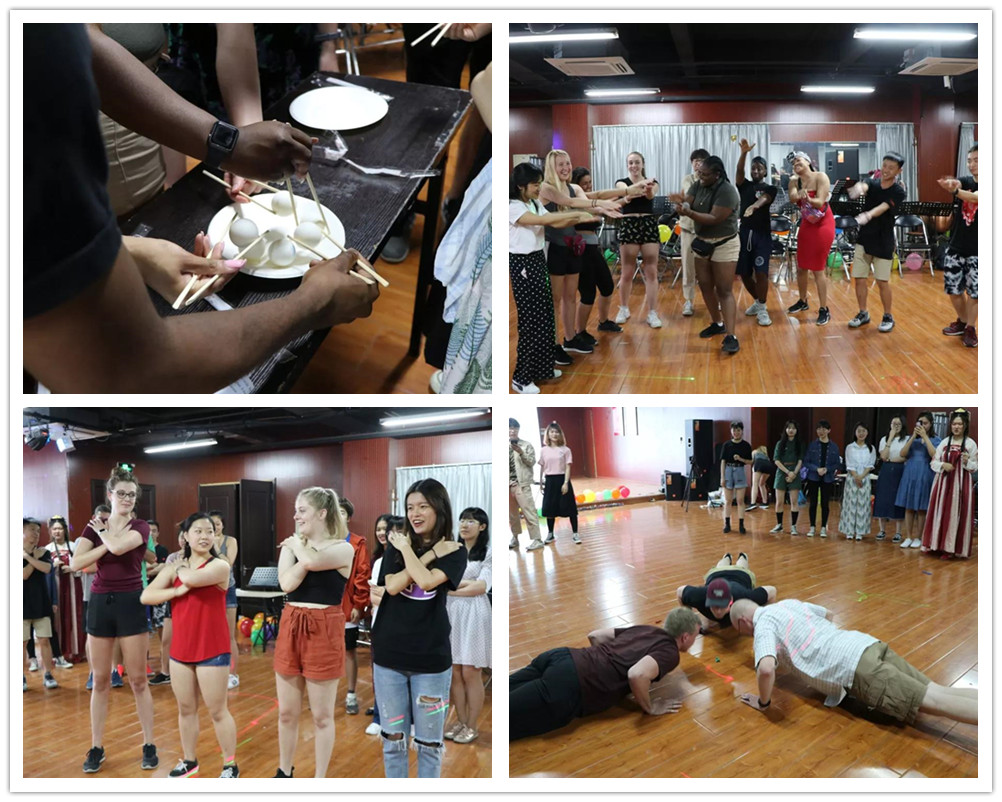 压轴登场的最激动人心的活动让晚会的热情达到了巅峰,所有同学围成圈,按照中间人叫出的数字抱团组队,落单者或错误组要做一个简短的表演。随着热情的音乐节拍响起,充满激情的游戏过程让每个人的脸上都绽放出笑容,同学们之间合作展示的节目虽简短却形式多样,大家都释放出本我和热情,在欢声笑语和此起彼伏的歌声中,令人难忘的欢迎晚会就落下了帷幕。