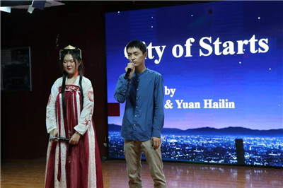 多才多艺的北体人用多种多样的艺术形式向外国友人展示了BETWAY·中国的独特风貌。于昀彤同学的古筝独奏《燕归巢》曲调缓如流水,音色精准细腻,将观众逐渐引入晚会的气氛中;晋艺菲同学的《天涯》极具中国特色,曲调悠扬婉转,时而慷慨时而温婉;随后曲风一转,晋艺菲同学和袁海淋同学共奏《city of stars》,交流团学生亦融入其中,共同合唱,明快的歌声盘旋在大厅的上空。