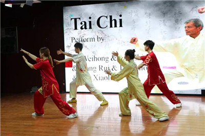 舞台灯光一闪,代替绵长的歌声的是力量与气势共存的太极表演(中国武术学院:何维虹、刘智琴、粱睿、李海龙、孙晓玲)以及技巧和招式结合的双截棍表演(中国武术学院:苏维杰、张卓宁,国际体育组织学院:周培媛)。太极表演结束后,交流团学生上台同太极的表演者们学习太极的基本招式,初略领会中国传统功夫。随后,何龙翔同学与交流团成员一同完成中国书法“福”字的书写,墨香之间感受中国书法的艺术魅力。