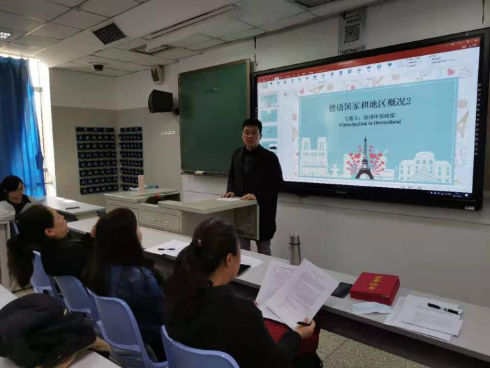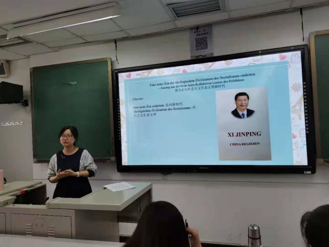 比赛中,德语专业何雨露老师的“德语国家和地区概况”课程,带领学生学习德文版《习近平治国理政》关于生态文明的内容,让学生了解中国在建设生态文明方面的决心。