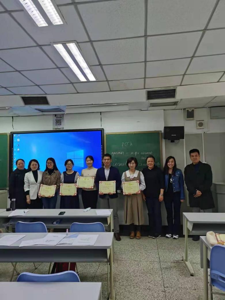 最终,鲁晓莹老师以强大的气场、完美流畅的俄语以及精美的教学课件获得一等奖;谢阶明、张墨池老师以严谨的逻辑思维、扎实的外语功底以及丰富的思政内容获得二等奖;冯雪、何雨露和居丽坤老师以充分的学生互动、清晰的教学思路以及丰富的教学内容获得三等奖。