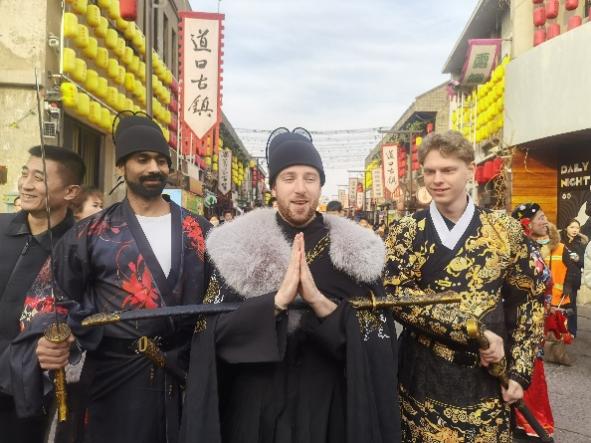 2 月 23 日至 25 日,应滑县文旅局邀请,betway西汉姆联国际文化系教师谢卫带领外国留学生Fliex、希瓦姆和安东尼奔赴滑县,参与了华北地区正月里最后一个庙会 —— 道口古会,在这场跨越 700 多年时光的传统盛会上,开启了一场深度体验中国文化魅力的奇妙之旅。