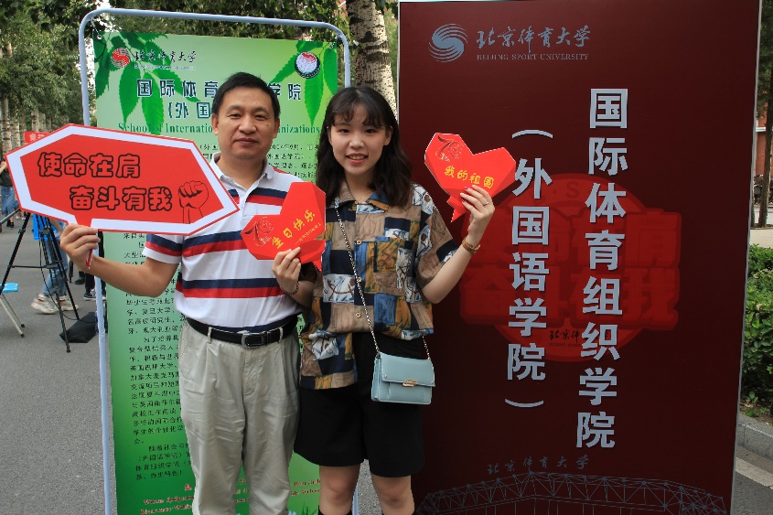 2019年,恰逢祖国建国70周年,国际体育组织学院的新生们,用诚挚的话语和纯真的笑容,向祖国母亲送出了最衷心的生日祝福。印有“使命在肩奋斗有我”“我的祖国”“生日快乐”的KT板,为祝福增光添彩。