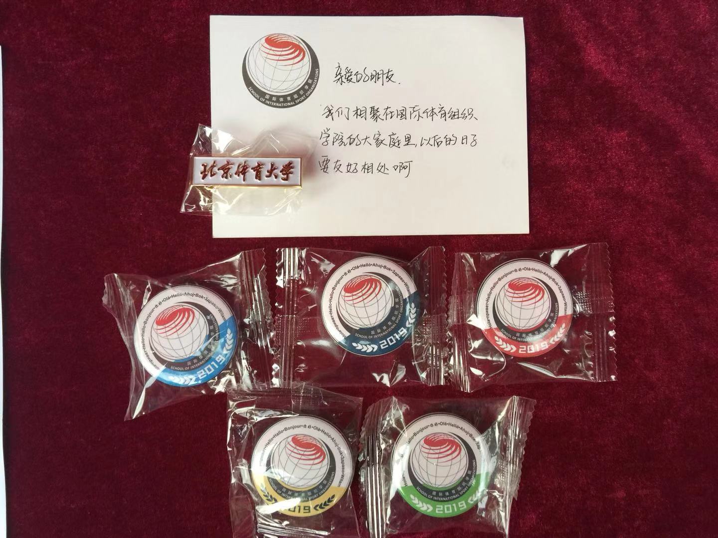 每一位国际体育组织学院的新同学都收到了印有各个语种欢迎语的徽章,以及精心设计的手写明信片。