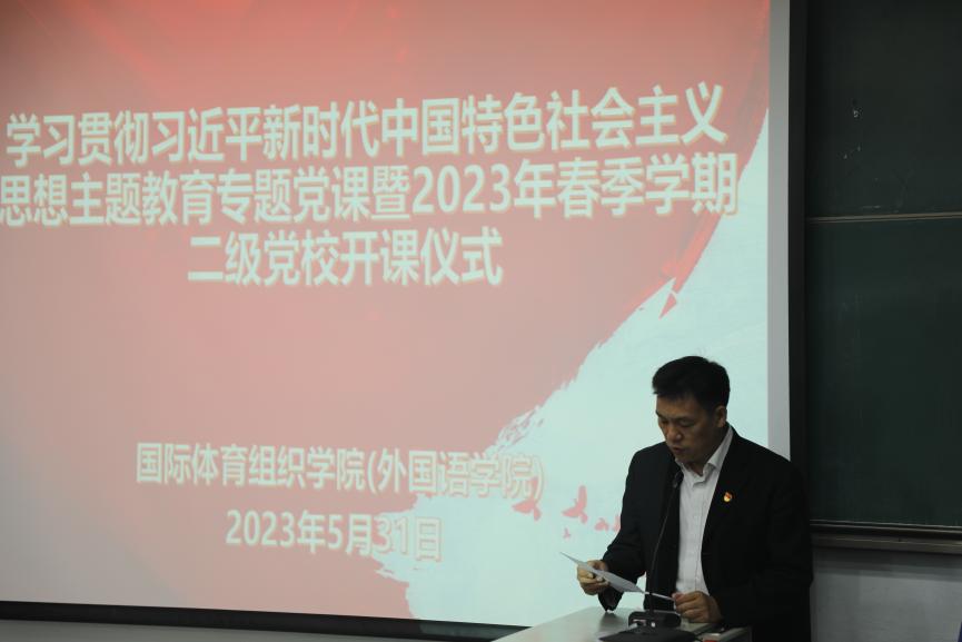 国际体育组织学院(外国语学院)举行学习贯彻习近平新时代中国特色社会主义思想主题教育主题党课暨2023年春季学期二级党校开课仪式
